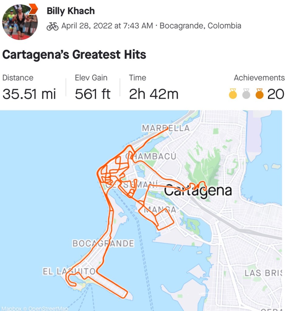 Note that for all of these routes I would say honestly they aren’t great cycling for all the reasons mentioned above, BUT there are some moments of brilliance that can be found for those who are ambitious enough to seek them out. All of my routes begin in the hotel area just outside of the old city of Cartagena in Bocagrande.